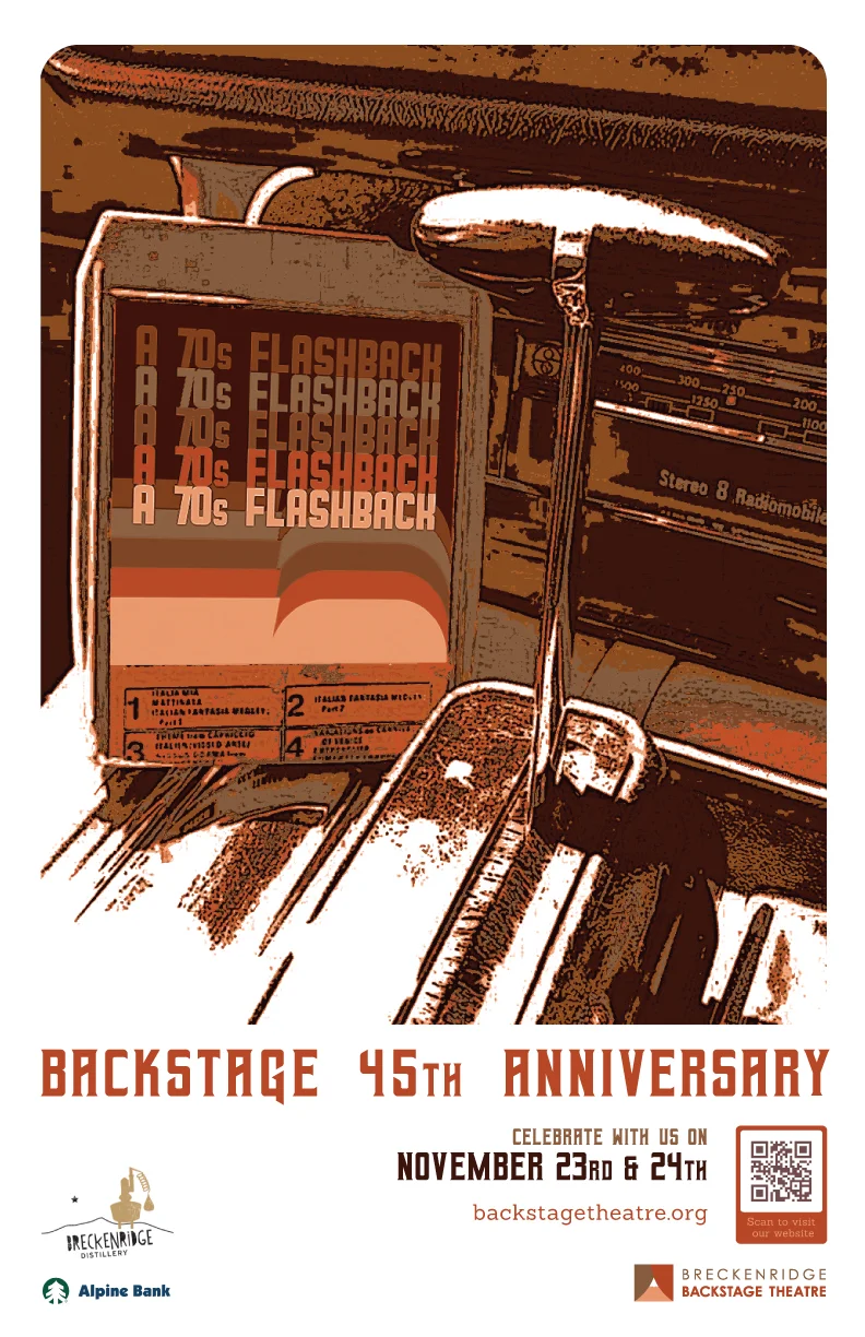 Join us at the Backstage 45th Anniversary Show on November 23rd & 24th, A 70’s Flashback for the 45th Season Reveal!